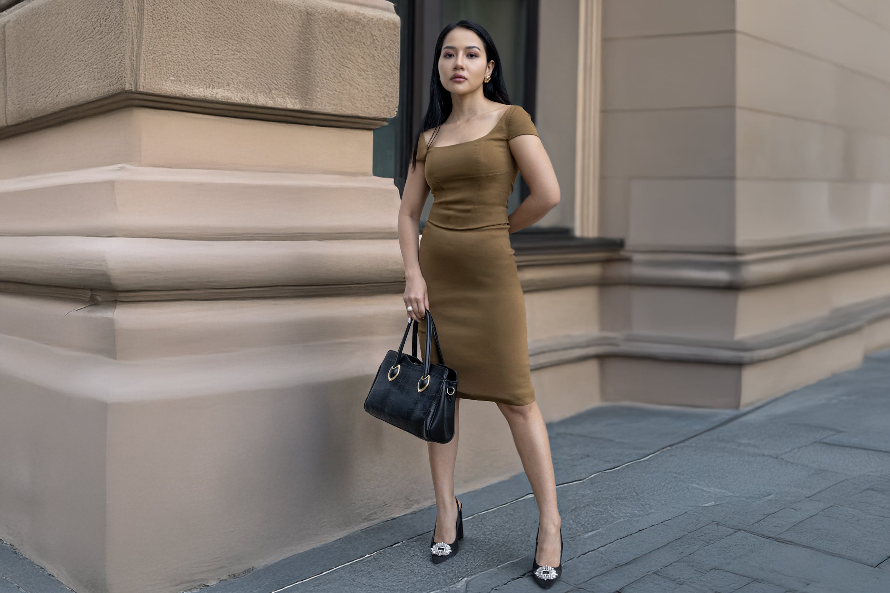 Zoe defines power dressing with a sculpted corset that cinches and contours, paired with functional pockets that blend utility with unmatched elegance.